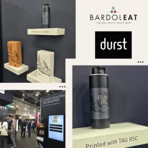 Ad esempio, per Durst Group, azienda mondiale leader specializzata nella produzione di sistemi di stampa digitali, ci siamo occupati della fornitura di olio extravergine di oliva 100% italiano per un packaging presentato alla fiera internazionale Drupa di Düsseldorf.