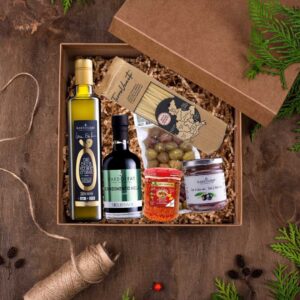 Ogni box contiene una selezione di prodotti gastronomici italiani di alta qualità, a lunga conservazione e dal packaging curato, ideali come regali aziendali, cadeaux per eventi o welcome gift per ospiti.